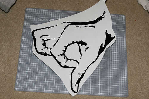 Si usted está esperando que la parte gráfica real quema debe eliminar todo el vinilo alrededor de lo que atrajo. (ejemplo abajo)