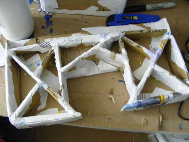 Papel maché de los expuestos los bordes y uniones que se cruzan.