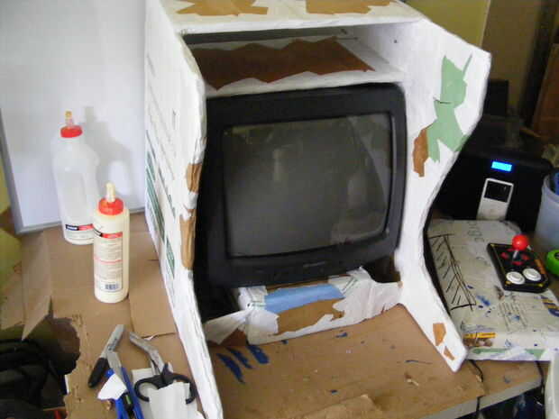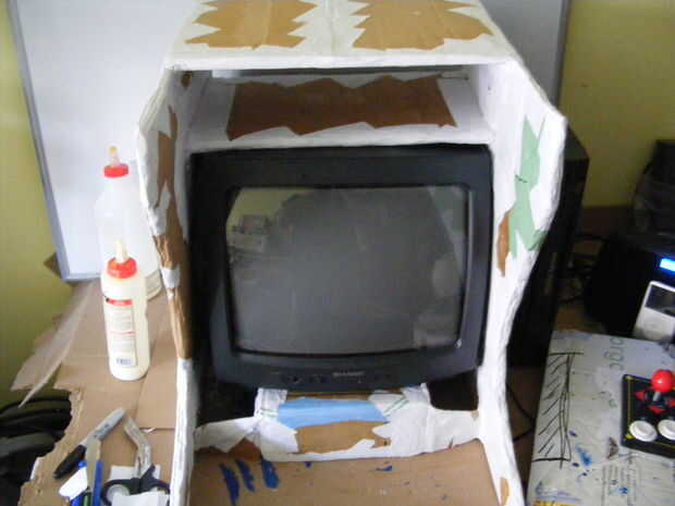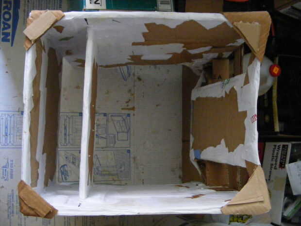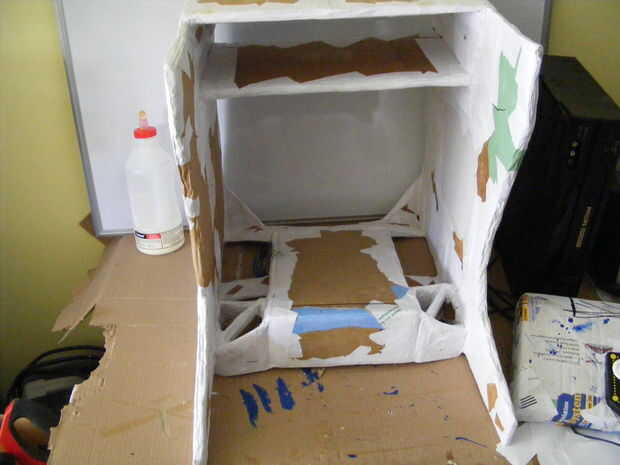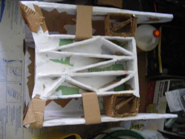 Sólo podría colocar un pedazo grande de cartón hacia abajo y pegue todo en su lugar pero que no sería divertido. Si usted hizo la rampa del mismo ancho que el VCR de la base, sólo tienes que pegar a las piezas laterales - no pensar en eso en primer lugar.