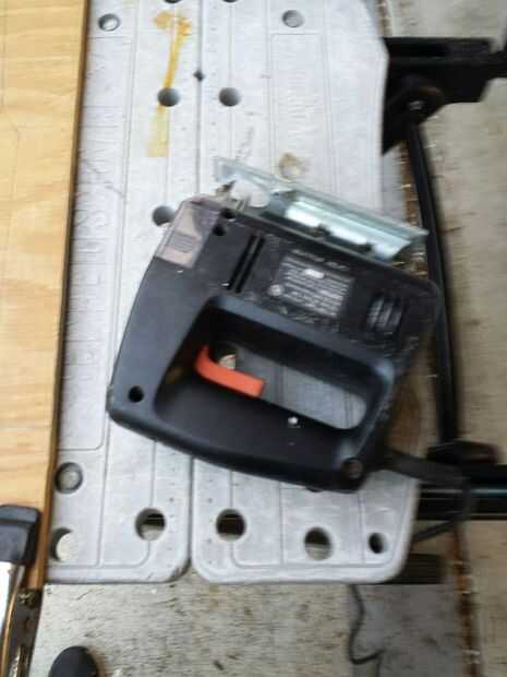 Una sierra caladora es la herramienta perfecta para el trabajo como puede perfilar a la curva de los bordes de las botellas.