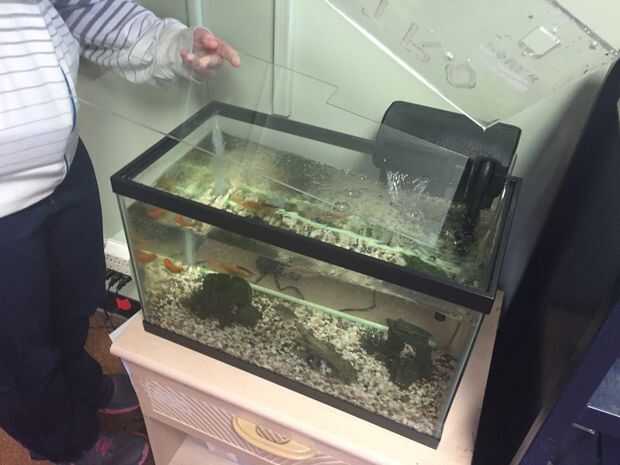 Tapa de acuario con la hoja de la espuma