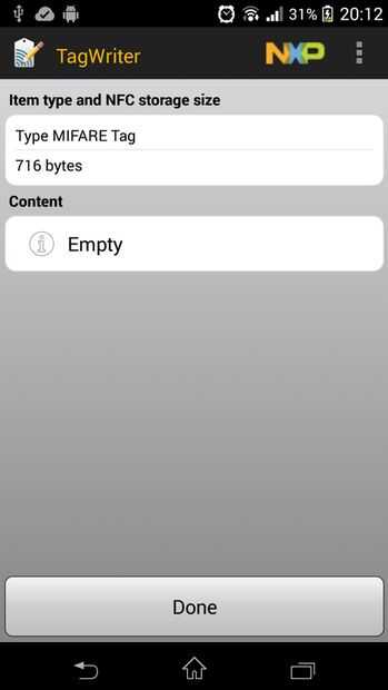 El programa nos pide acerquemos la etiqueta. Sitúa la etiqueta (Tag) detrás del móvil.