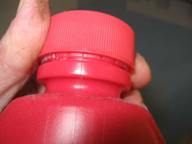 Para llegar a los contenidos puede tratar de usar excesiva fuerza hacia abajo sobre la tapa, falta que usted tenga que quite la tapa exterior con un destornillador para quitar la tapa interior de la botella.