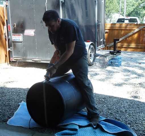 Paso 12: Sí, tratando de cortar un barril plástico redondo es torpe. Ayudará a un juego extra de las manos.