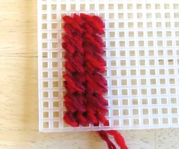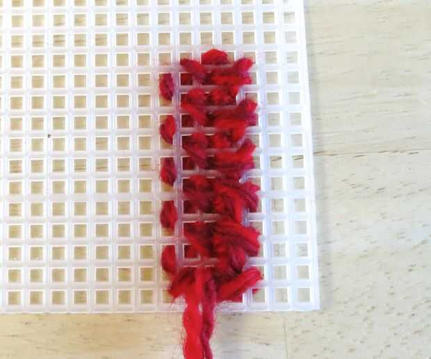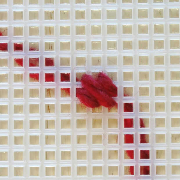 Para este modelo, quería dar la ilusión de píxeles. Usted puede hacer esto muy bien haciendo todas las puntadas cortas, pero decidí hacer algo más para esto. Para hacer 1 píxel, hice dos cortos que rodean una puntada doble como se muestra en la primera imagen. Los lados no estaban aún allí eran lugares que tenía que hacer solamente puntadas solo cortas, pero la mayoría de lo puntos se parecen a esto.