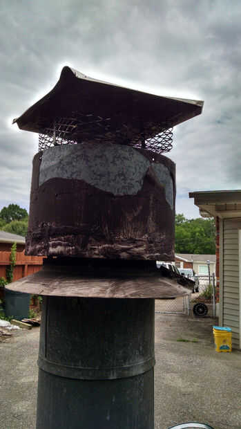 Tomamos por la chimenea de pared triple recientemente durante la reconstrucción y decidí que la tapa de chimenea vieja tuvo que ir. Nunca trabajado derecho siendo que era cuadrada y, por supuesto la chimenea redonda. (Ver fotos). Casquillos de chimenea de reemplazo pueden ser bastante costosos, en cientos de dólares. Aún más teniendo en cuenta que quería trabajar con el collar de gran tormenta ya instalado 18 pulgadas. Mi presupuesto era un máximo $50-$75.