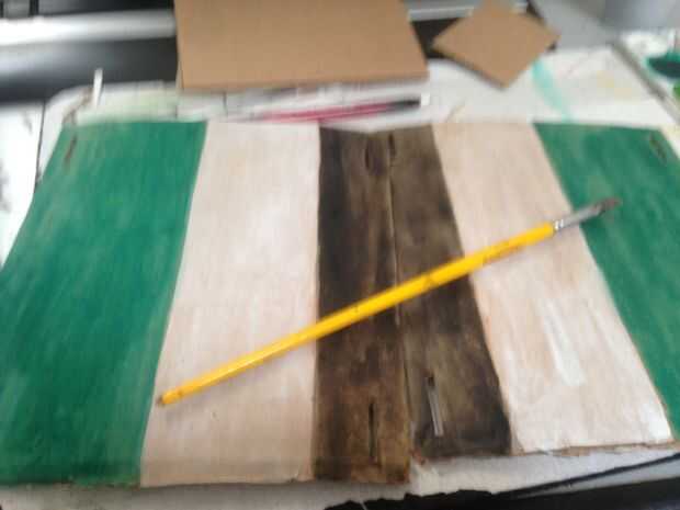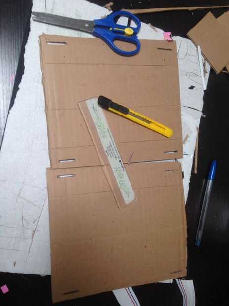 A continuación, hacer cuatro orificios largo como se muestra. Esto es donde se colocará la cinta de goma. Antes de continuar colorearlo. Si quieres algunas combinaciones de color limpio, puede ir a la página de colorcombos.com. Su bastante aseado. Después de colorearlo, reforzar los agujeros con cinta adhesiva.