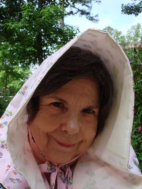 LUPUS paciente felizmente jardinería en E.  TEXAS con tapa de listón de su 1870.  A veces viejas ideas pueden ser muy saludable y útil en esta edad moderna!   Mi hermana tiene Lupus y me pidió hacerla este Capo.  Me hizo y envió a ella y ahora ella es feliz cultivando un huerto en el este de Texas. Pacientes con lupus necesitan protección del sol.  El primer Capo necesitaba más re-enforcement así con este patrón lo modifico con bolsas de plástico fundidas con papel pergamino.