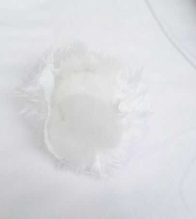 Para hacer la cola, sólo tiene que colocar un platillo de té en el tejido plumoso como plantilla. Dibujar y cortar