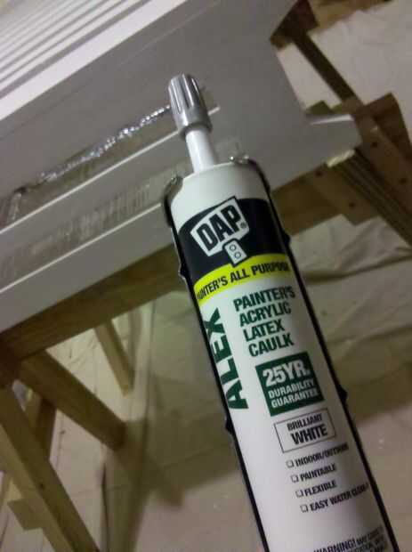 Después de un año de uso, el calor hizo el encogimiento de madera y se hinchan. Unos boquetes abiertos por lo que llena los huecos con masilla de pintor. Porque es un sellador acrílico, resiste el agrietarse y es más flexible que la masilla de madera o masilla de pintor.