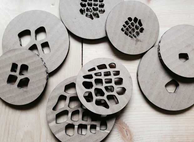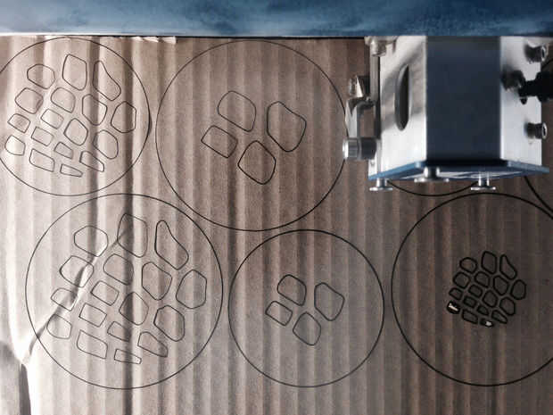 Trabajando desde una fotografía de mi ala de libélula, había transformado en una imagen vectorial y luego había importado en CorelDRAW. Después de crear mi archivo de diseño en CorelDRAW, usando una capa y dos tamaños de tapa para cada diseño, he probado mi diseño por corte de cartón, para comprobar el tamaño y el diseño.