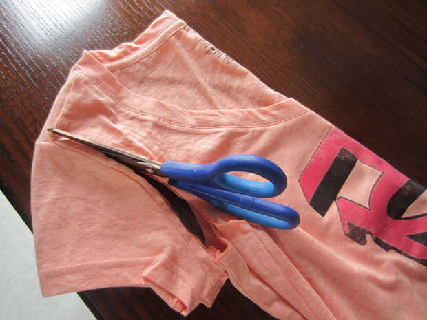 estos tienen algunas de mis camisetas de verano favorito.Déjame mostrarte qué hacer...Paso 1: Conseguir una camiseta viejaPaso 2: Cortar las mangas Ver foto de las instrucciones:Paso 3: Cortar el escote Paso 4: Cortar la parte trasera Paso 5: Hacer l