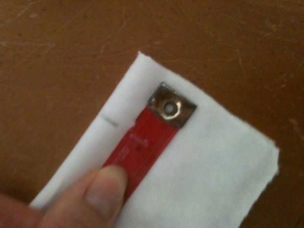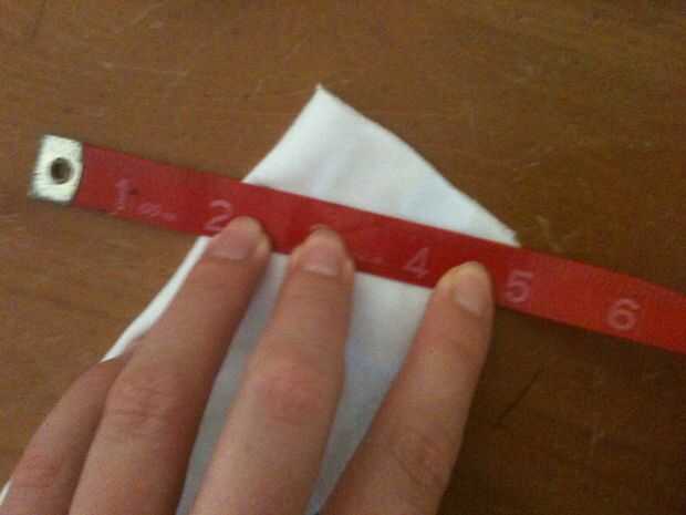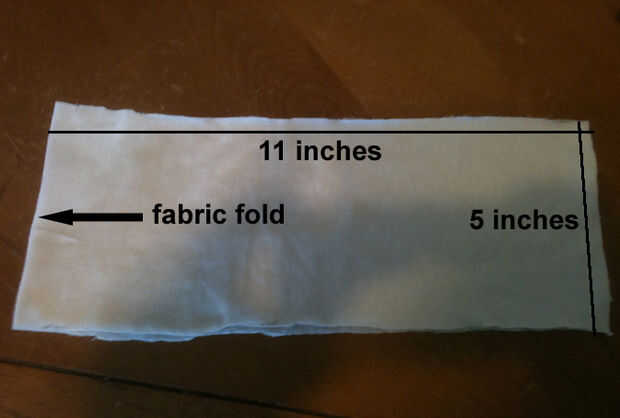 Ahora que tiene su anchura y longitud, medir hacia fuera en su tela. Mina corto sobre un doblez de la tela así que dividí mi largo por la mitad a 11 pulgadas.