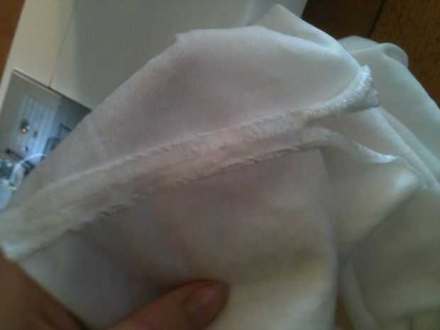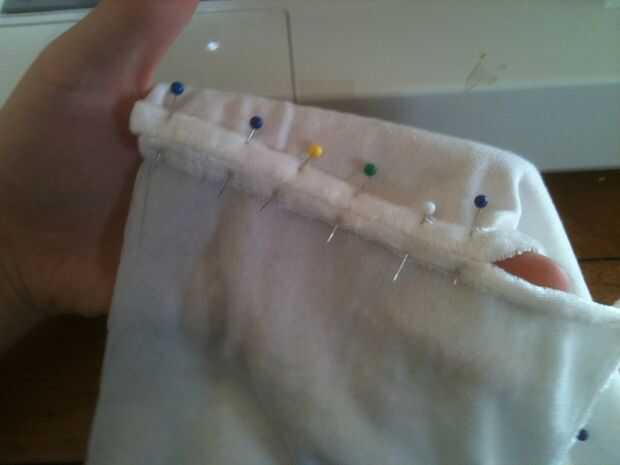Una vez que se cosen los hombros, terminar los bordes como en la costura trasera, doblando la tela en dos veces, alfileres y coser a ambos lados de la costura.