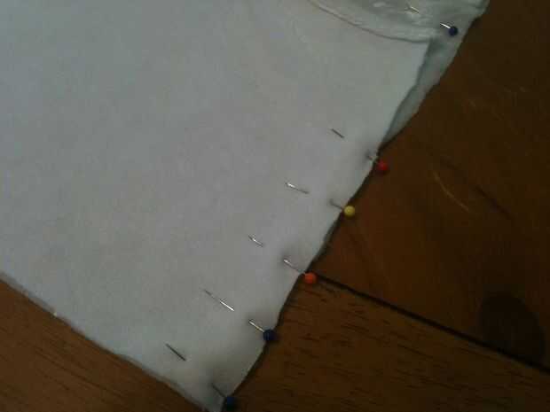 Fijar a la tela a cada lado de las marcas para hacer los hombros y costura, una vez más con un margen de costura de media pulgada.