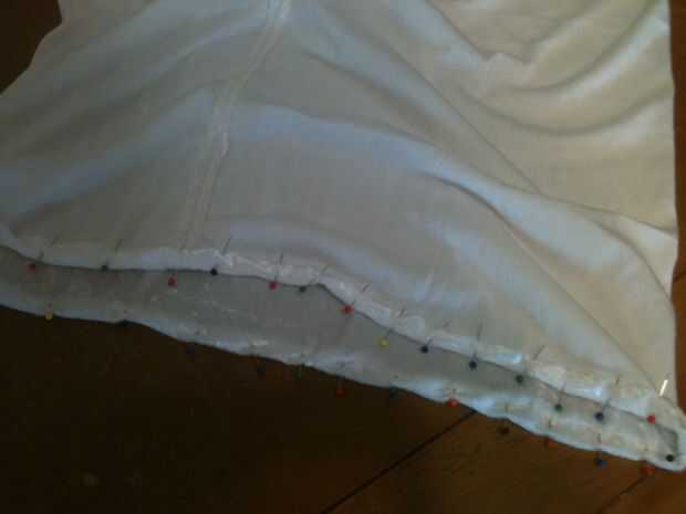 Acabado de los agujeros del dobladillo y del hombro es muy fácil - simplemente doblar el bajo por 1/4 de pulgada y luego otra vez por 1/4 de pulgada, coser (está cerca del borde de la tapa para recoger la tela) y quite los pasadores. Habrá un montón de tela para coser a través de cuando vas por las costuras, pero la máquina debe ser capaz de manejarlo. Usted debe terminar con un borde muy bien acabado.