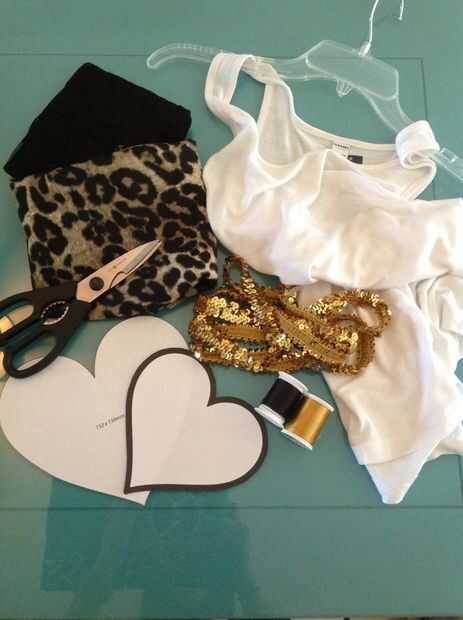 -Tanque blanco llano (compré esto en Old Navy por $5.99 en el espacio). -negro encaje material - leopardo material - del corazón dos cortes, uno más grande que el otro puede buscar en google y sólo imprimir - negro y oro hilo - aguja - tira de lentejuelas elástica de tijeras - pines - oro