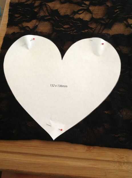 Corazón grande pin recorte a un doble sobre la pieza negra de encaje. Esto resultará en dos encaje negro corazón cortes para una apariencia más gruesa.