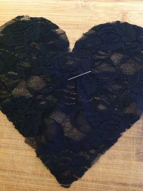 Coser dos corazones de encaje negro en el centro, sólo para hacerlos más fácil trabajar con.