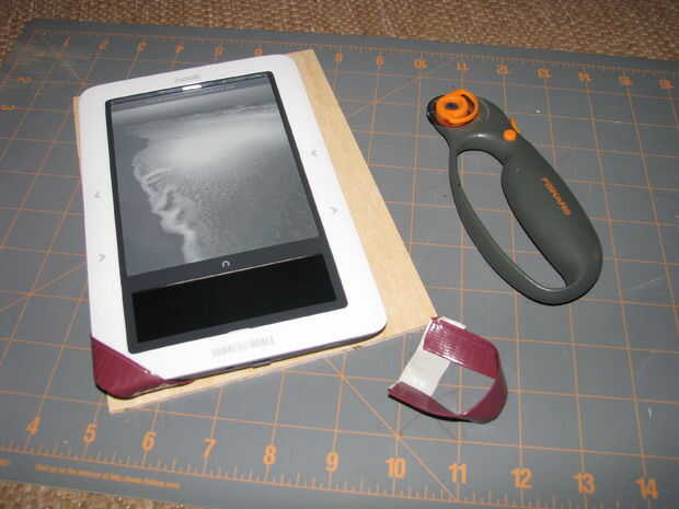con el lector, mida para los titulares de esquina inferior y cinta abajo asegurándose de reforzar con varios trozos de cinta ya que mantendrá al lector en el lugar y debe soportar su peso.