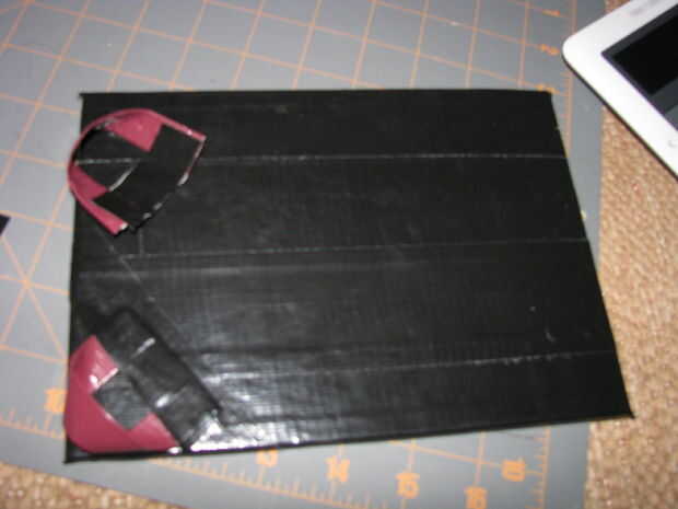 Hice los soportes de esquina inferior de cinta que doblé más de tres veces por lo que no hay piezas adhesivas mostrando. Son aproximadamente 4" de largo.