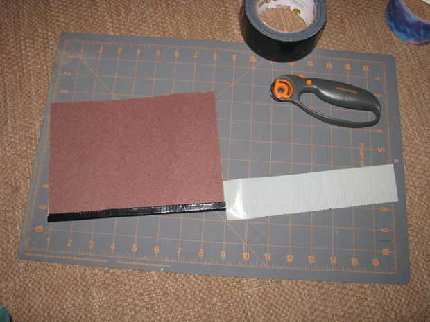 Decidí utilizar algunos fieltro debajo de mi cinta para darle esponjosidad un poco. Puse la cinta en el tablero y realizó un corte entonces dobla la cinta detrás para crear un aspecto más limpio.