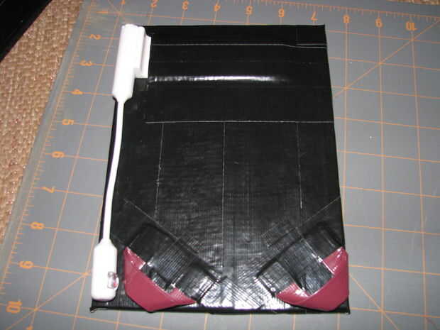 girar esta pieza sobre y cinta hasta el tablero del forro.  Esto creará una pequeña ranura brida de luz.  Esto hice clase de apretado para que la luz permanecerá en la ranura.