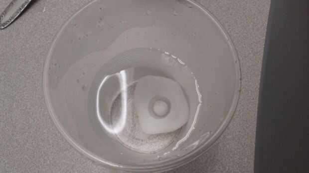 Cuando ya se tenga la forma final de la tapa del tubo de crema, se procede a retirar haciendo su función de abrir el tubo para mantener la rosca de la se hablo en el paso anterior. La tapa se ambientarnos en agua fría para el choque térmico haga el Instamorph se endurezca y visualmente regrese un ser opaco.