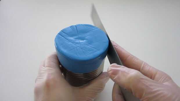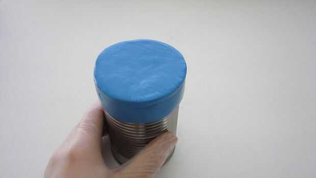 Aplica la silicona masilla uniformemente alrededor de la parte superior de la lata. No desea ninguna parte estar demasiado delgado o pueden romper cuando se utiliza. La masilla debe venir por el lado de la can por lo menos 1/2 de pulgada. Si usted quiere asegurarse de que tiene un suave y hasta el acabado, puede ir suavemente sobre él con un objeto plano como una regla.