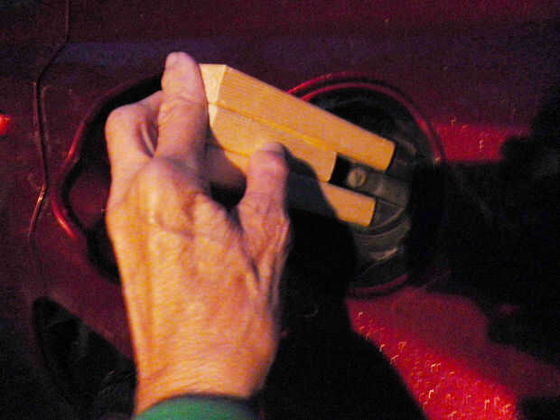 Justo por encima de la pieza del medio estabilizador, perfore un agujero en un lado del extremo abierto. Limpiar si es splintery o quisquilloso mirando.