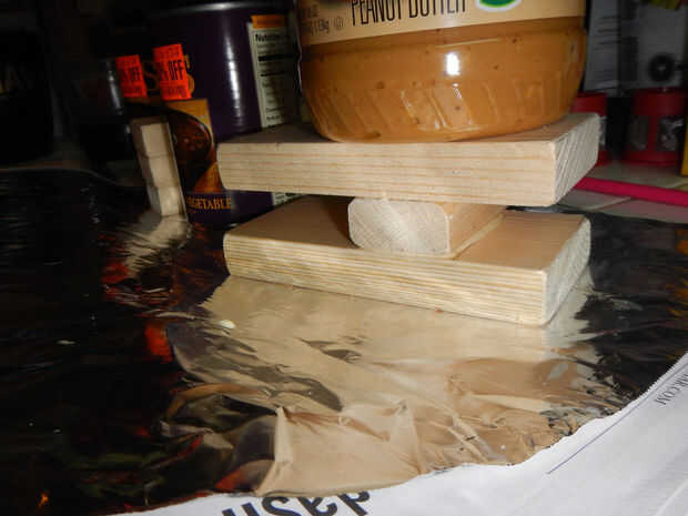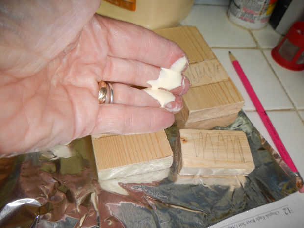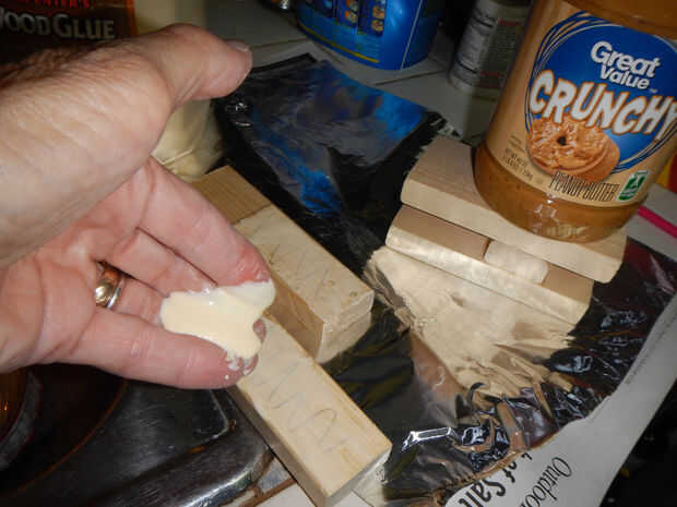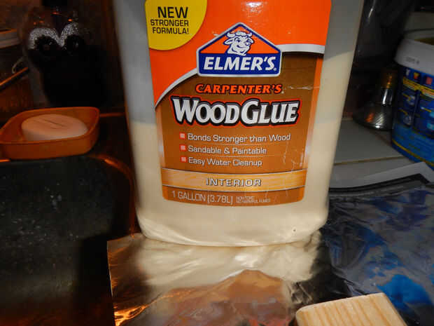 Encolado: Use una superficie que esté limpia y no se dañará por pegamento de madera (que es soluble en agua). Me gusta usar papel encerado de madera calidad de tienda; papel de aluminio también funciona. Periódico no es tan bueno porque se pega a la cola y hace un proyecto sucio de limpiar.