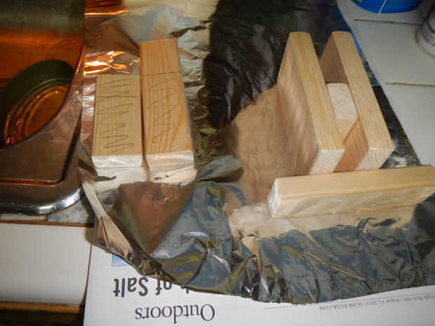 [A un lado: este es un proyecto barato y puede incluso que esté utilizando restos de madera. Si usted encuentra que las piezas han pegado un poco fuera del centro puede separar y volver a pegar fácilmente. Hervir una taza o dos de agua, luego colocar en un recipiente en el que se ajuste su proyecto. A pocos minutos de remojo inofensivo despegar las piezas! Llevarlos a cabo, apoyo ellos arriba para secar, a continuación, reiniciar en su tiempo libre].
