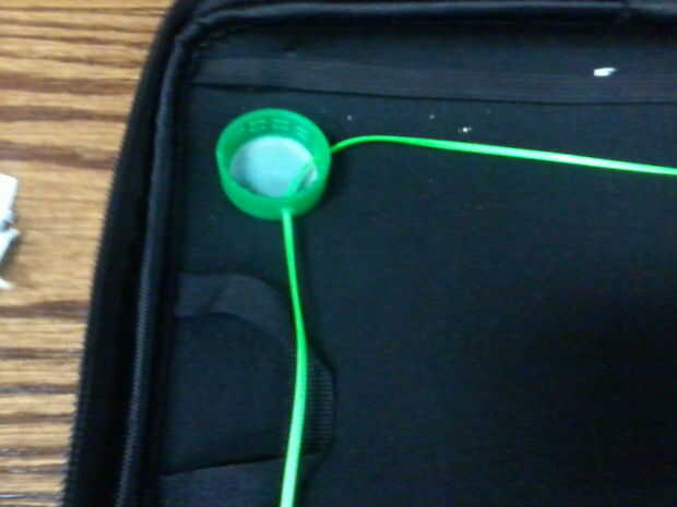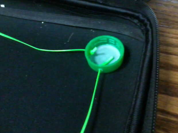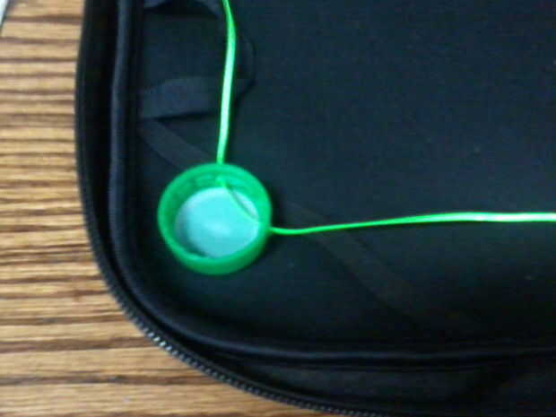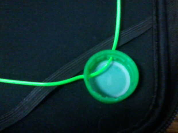 Estás listo para encadenar los tapones de botellas. Si desea, atar un par de nudos en la cadena en el interior de cada tapa de la botella para que la tapa se mueva, pero desea las tapas para sentarse en la posición de los pies en el portátil/netbook.
