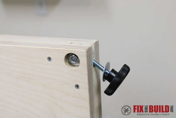 Instale una arandela guardabarros y un botón de inicio en el extremo de la armella que se traban abajo de los lados.