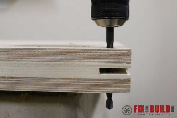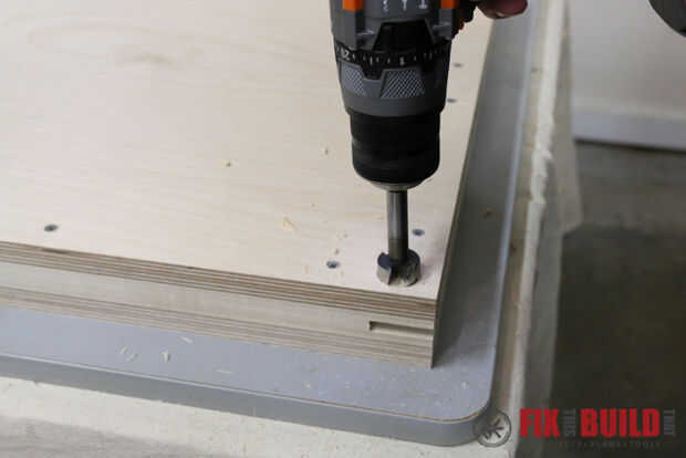 A continuación perfore un agujero de 3/8" a través del centro de cada uno de los agujeros embutidos.