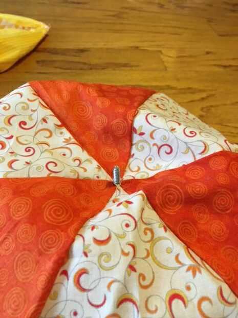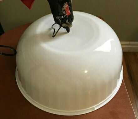 En el centro del bol, hacer un agujero lo suficientemente grande como para que la manija en, pero realmente no fije la empuñadura aún. Para la mayoría ensaladeras un par de tijeras o cuchillo de cocina hará el truco, o incluso el tornillo de la manija a veces.