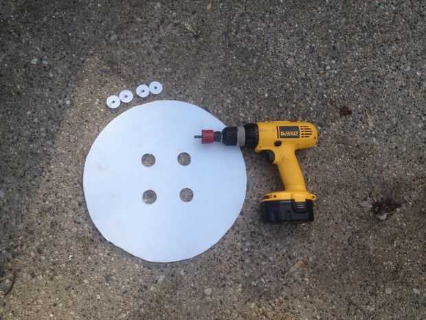1. con el círculo en el repuesto, darle la vuelta alrededor y marca los agujeros donde perforar.