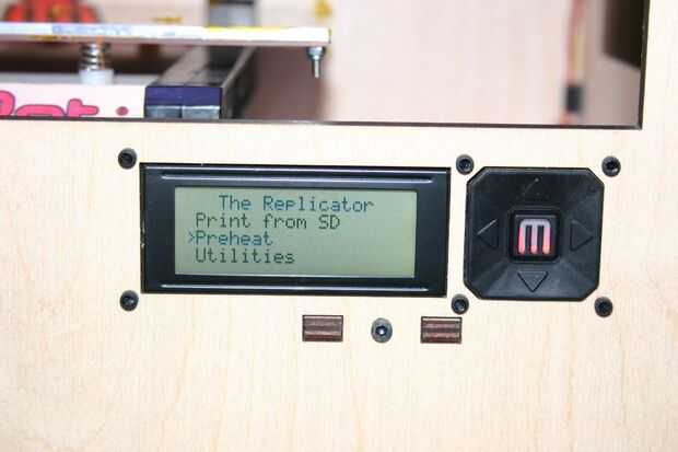 Encienda el Replicator y utilice el menú en el panel frontal para "precalentar".