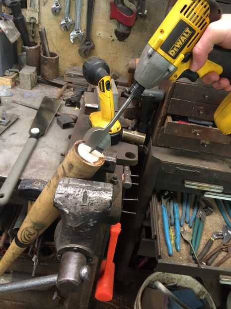 Usar una broca con el tamaño deseado, desglosar a través del centro del murciélago por lo que es necesario