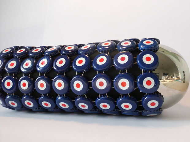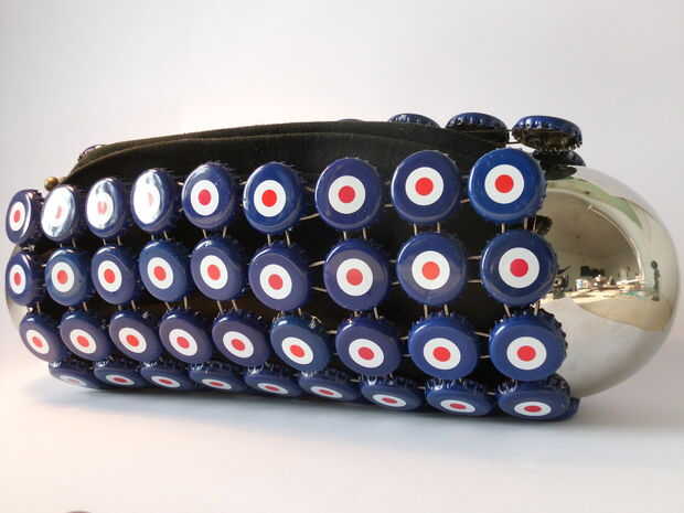 Todo el mundo sabe tapas corona. En más último desde tu primera cerveza. Ahora normalmente, usted simplemente tirarlos en un cubo, porque forman parte de la envoltura, entonces qué hacer con él. Cuando era más joven, junté corcholatas. Tuve mucho los diferentes, de todo color y para mí en este momento de alguna manera valiosa y único. Dejé de recoger ya que tuve mis primeras monedas. Volvió de alguna manera, cuando una nueva bebida llamada Bionade, que comencé a recoger otra vez. Debido al efecto Bionade es refrescante, los casquillos de corona tiene un diseño único. Pero, aún la pregunta qué hacer con él. Surgió la idea de construir una cartera hecha de tapas corona para mi novia. Bueno, amor fracasado y nunca terminé el proyecto, por lo que la sujeción es todavía falta, pero también puede utilizarse sin él. De todos modos, ha habido gente antes que yo, que construyó carteras hechas de tapas corona. No les gustaba. A menudo se hacían decir: "Hey, estoy hecha de tapas corona!", pero eso no fue lo suficientemente frío como para mí. Si quiere crear algo que siempre tienes que pensar sobre el diseño. Los casquillos de corona es necesitados incorporar en un contexto, como una buena pintura necesita un marco de imagen. Los casquillos de corona Bionade con que trabajé me recordó de lo que llamamos cultura de diseño de 70' s. ¡ Pop! Así que traté de poner las tapas de corona en este contexto. Usé alambre de acero flexible, Bionade corcholatas, dos partes de una bola de metal hueco. Para el interior usé Ultrasuede negro. Si necesita o desea obtener más información, sólo en contacto con y me ayudará a construir tu propio bolso.