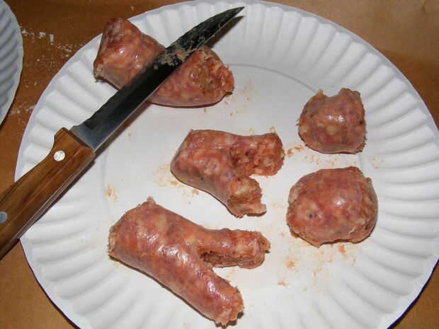 Corte una abertura en el fondo y la forma de salchicha en forma de Y. Debería parecerse a la mayor parte del torso y los muslos.
