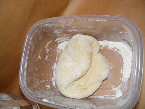 Amasar y golpear hacia fuera con las manos. Mantenga en doblar y presionar hacia abajo. Cuando no quiere estirar o inicia a firma para arriba, dejó resto en la nevera cubierta durante una hora o dos.