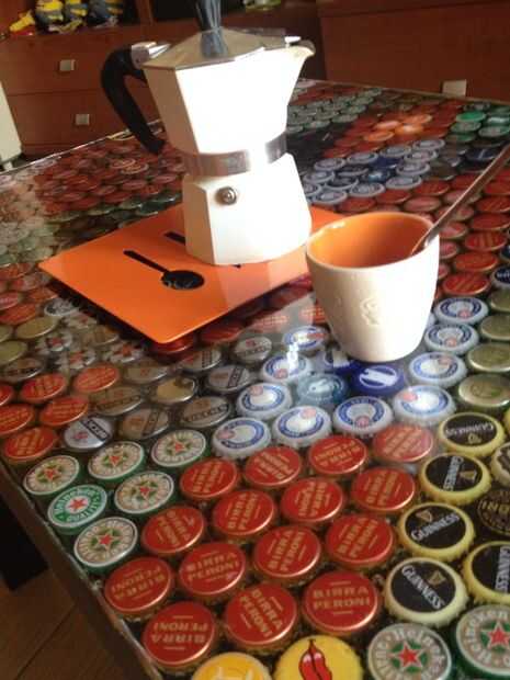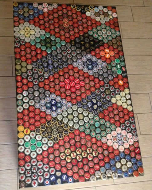hemos ido recogiendo tapones de botellas de lo que parece para siempre anticipando esta tabla. Después de pasar nuestra colección con nosotros a 4 casas en 3 Estados diferentes, ahora tenemos bastantes casquillos para esta tabla además de emparejar u
