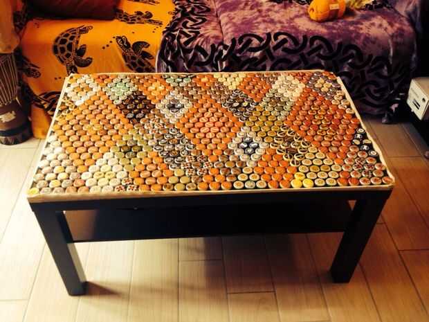 En primer lugar puse una cinta de papel adhesivo en el borde de la mesa, para evitar que las tapas de caer abajo.