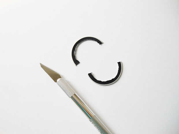 Cortar el timbre de la base de los tapones usando un cortador. Trate de ser lo más preciso posible, pero no te preocupes si no es así, usted puede refinar cada anillo con un par de tijeras pequeñas.