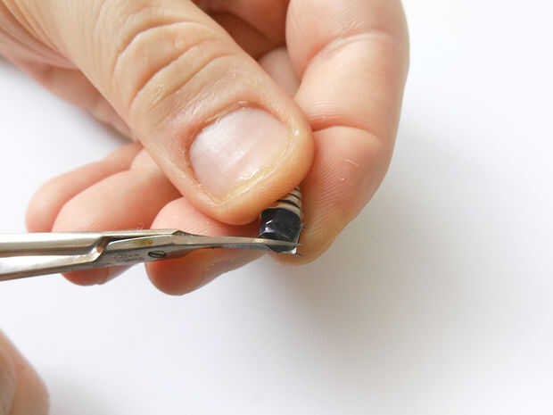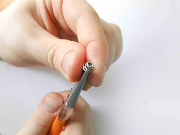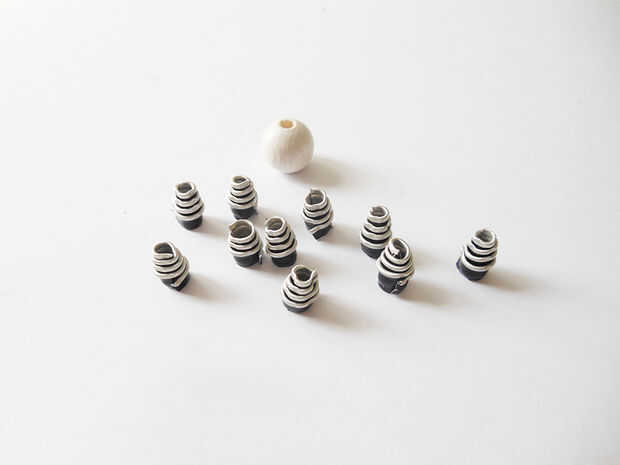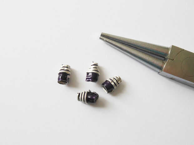 Rollo de cada pieza única del anillo con la punta de la pinza. Es necesario crear muchos rodillos de espiral pequeño.