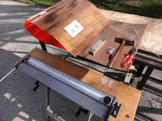 -Hoja de cobre (16 oz), comprada a una empresa de suministros de material para techos