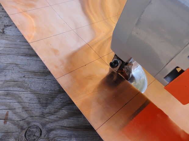 Usando las tijeras de chapa eléctrica, cortar las tiras y luego cortar a la longitud (aprox. 19 1/8")