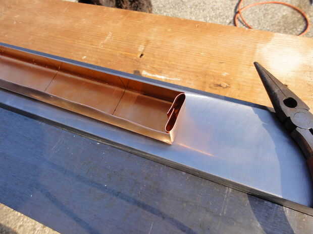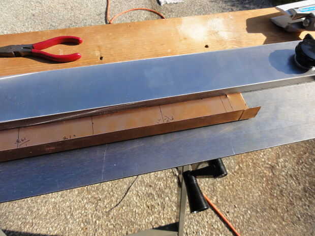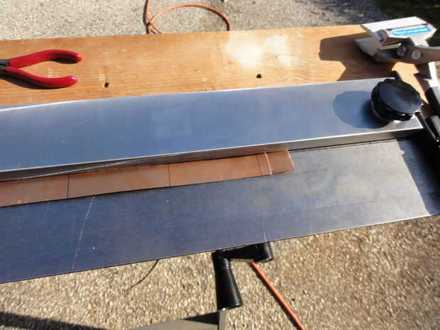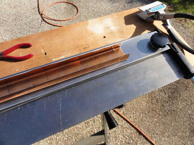 a continuación se coloca la tira cortada y recortada en el freno de la flexión y los dos lados largos están doblados a 90 grados.