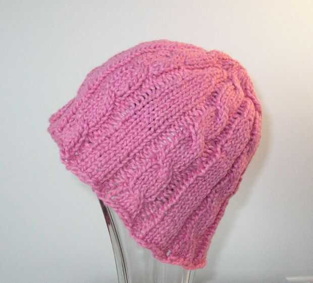 Cable rosa y sombrero de la costilla. Hecho en Bernat Cottontots en color fresa y el uso de un patrón tradicional de sombrero de cable y de la costilla como estos